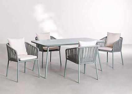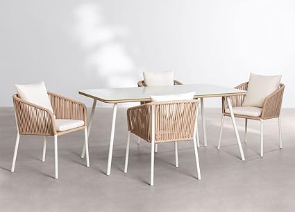 "D'aromas Supreme 4 Seater Outdoor Iron Rope Modern Classic Dining Set Chair and Long Table for Dining Room Sets"