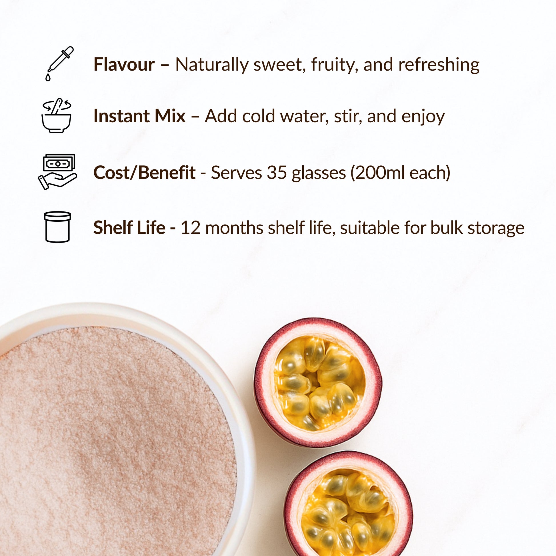 - Easy to Prepare: Add 2 teaspoons (approx. 9g) of premix to a glass. Pour in 100ml cold water. Stir until dissolved. Add ice cubes and enjoy.