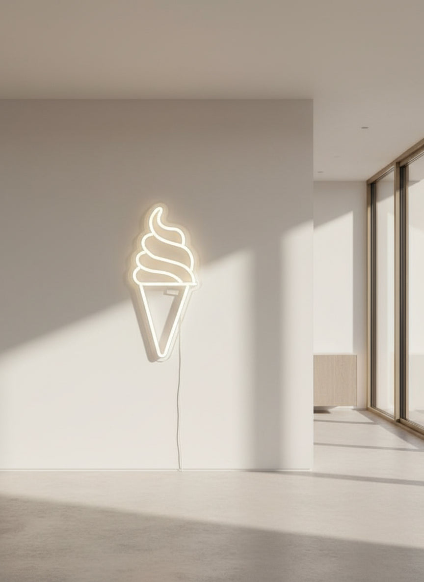 Fun Ice Cream Design: Bright and playful neon-style LED light shaped like an ice cream cone—perfect for adding a cute aesthetic touch to any space.