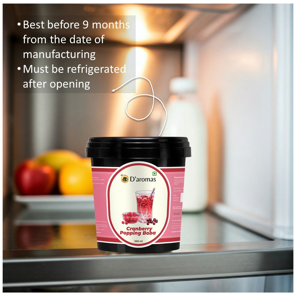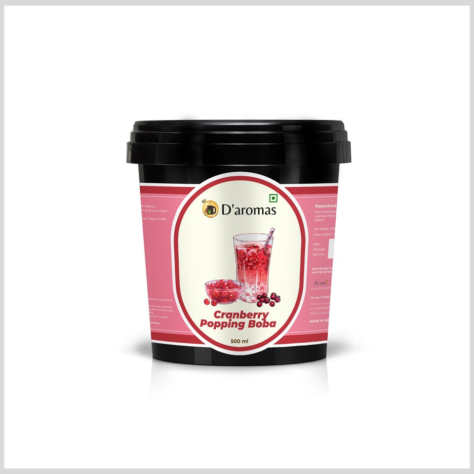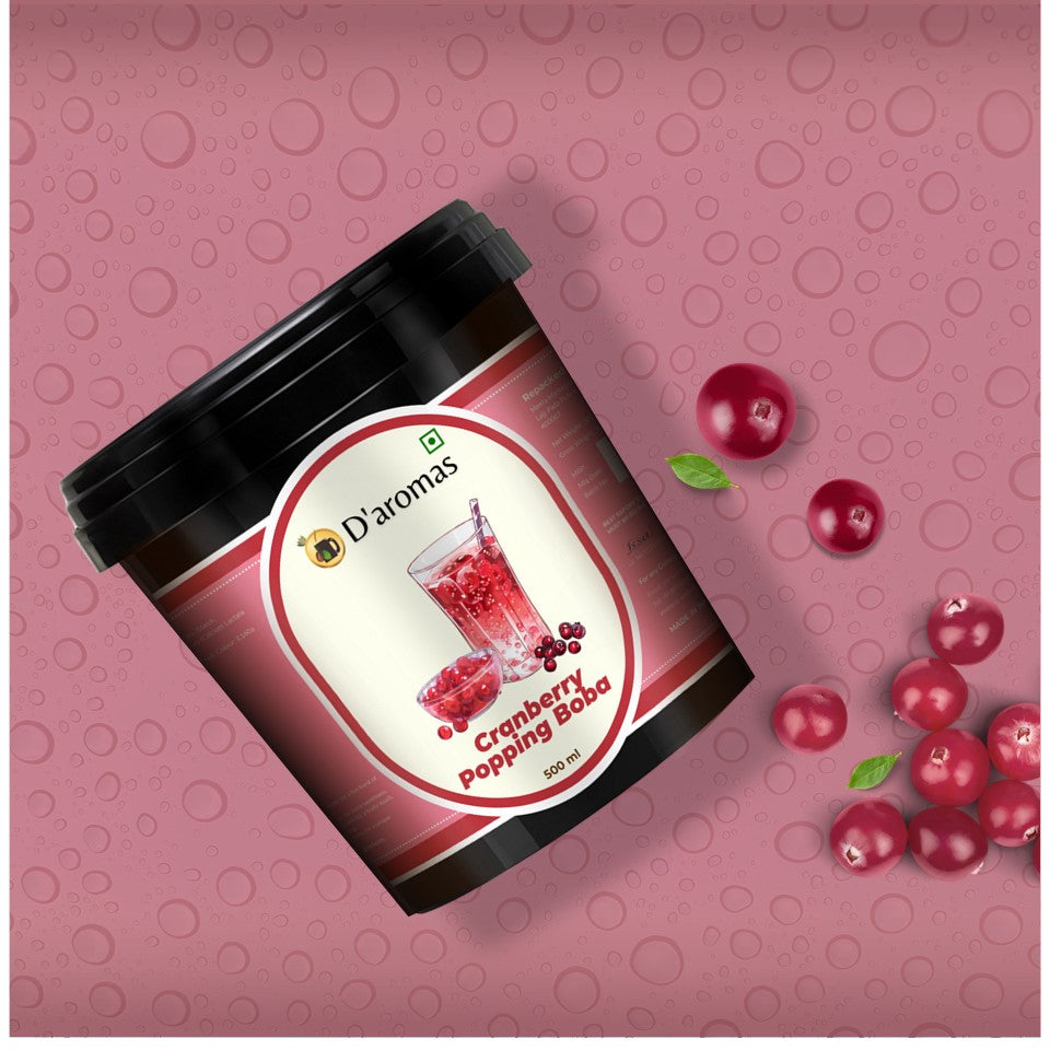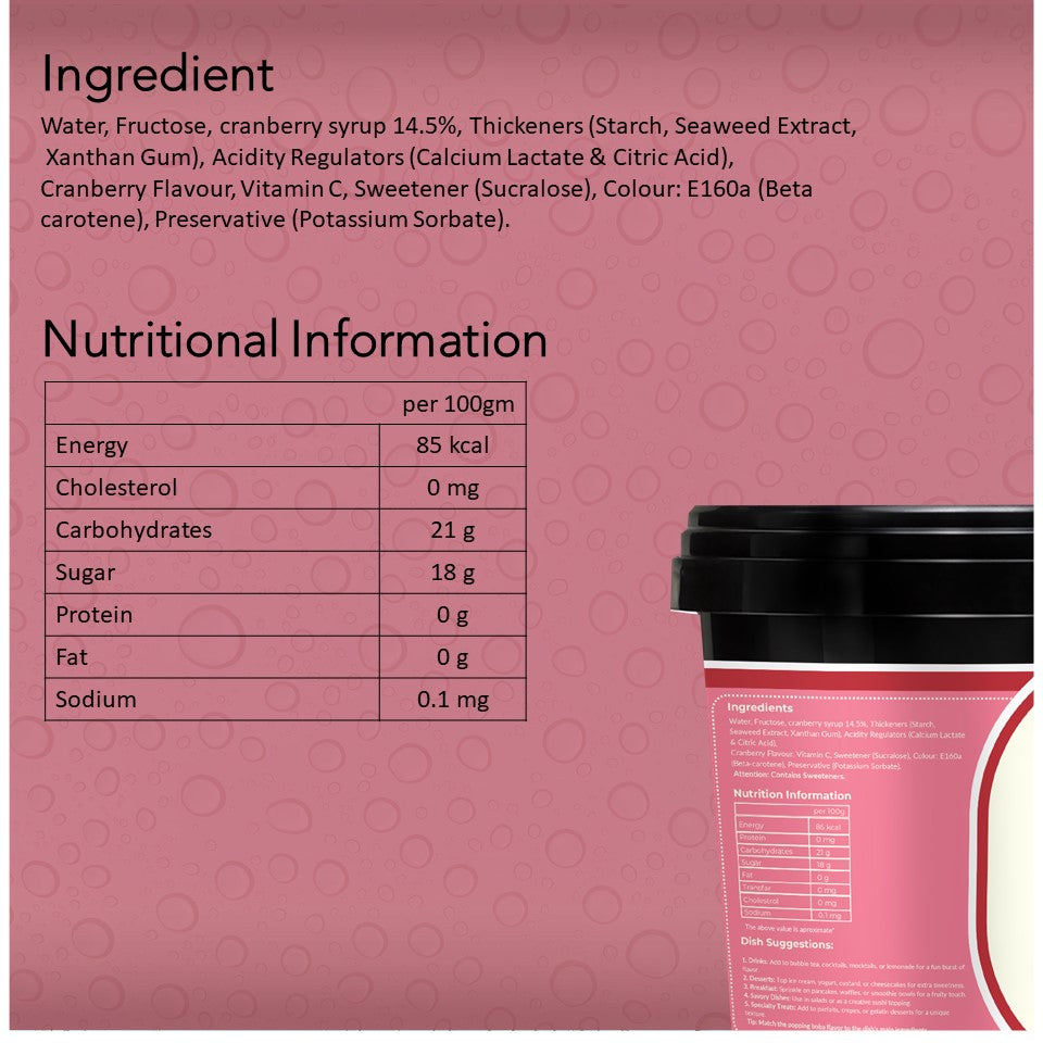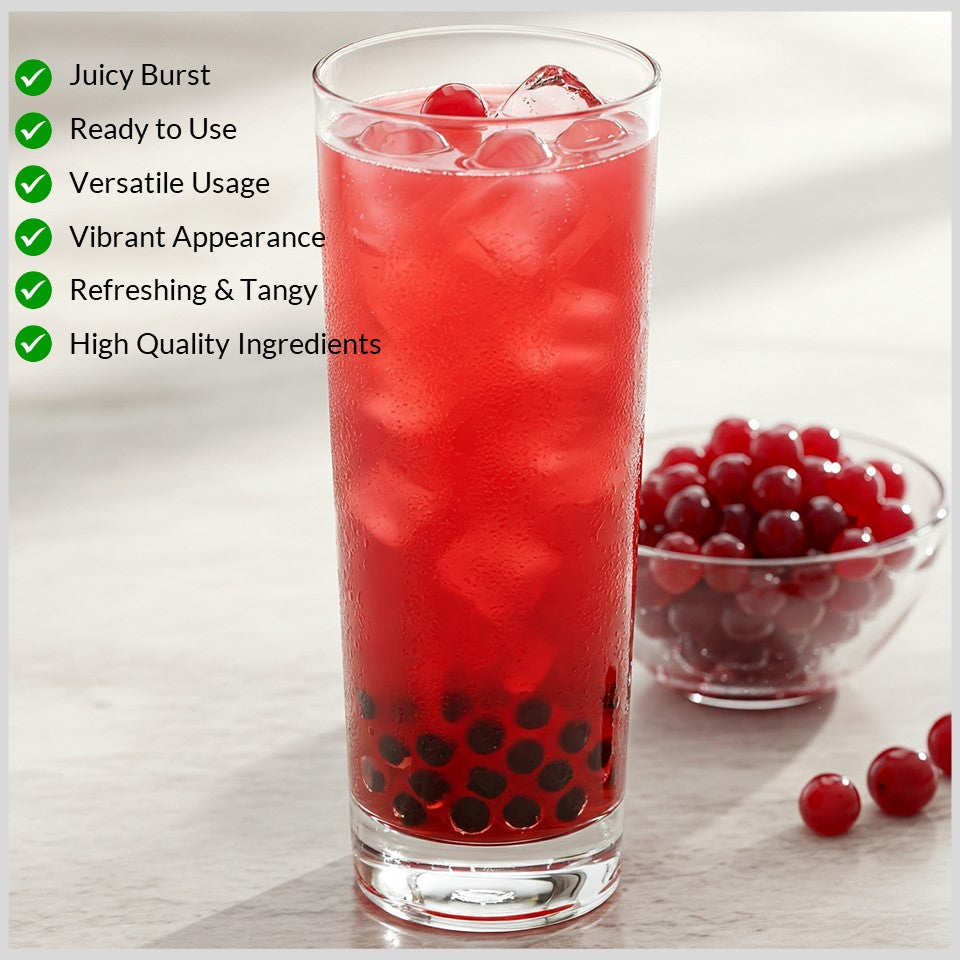 • Crisp Cranberry Burst: Small, chewy pearls filled with tangy cranberry juice that burst with a refreshing, tart flavor in every bite.