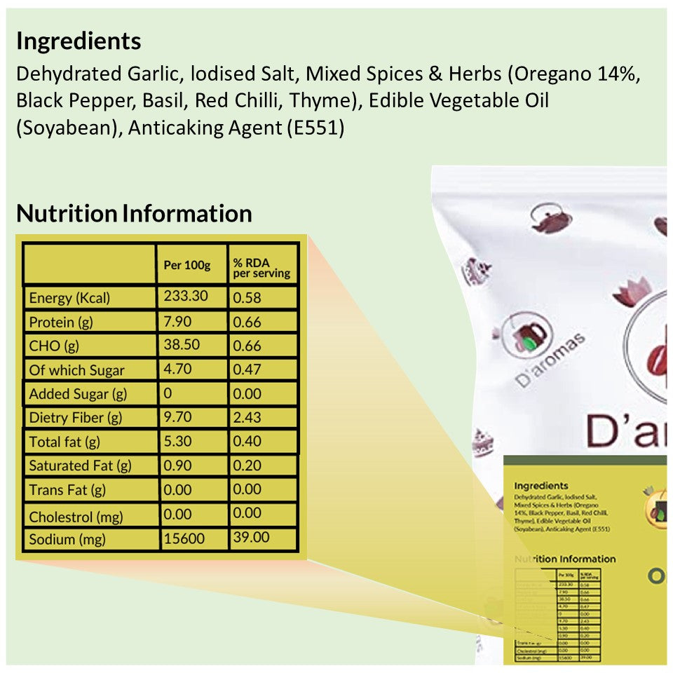 • Convenient and Ready-to-Use: A versatile seasoning mix, perfect for enhancing the flavor of pizzas, pastas, salads, and more with just a sprinkle.