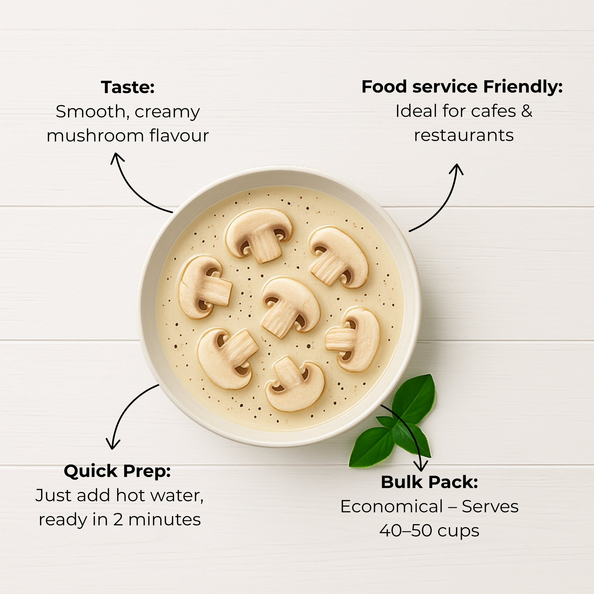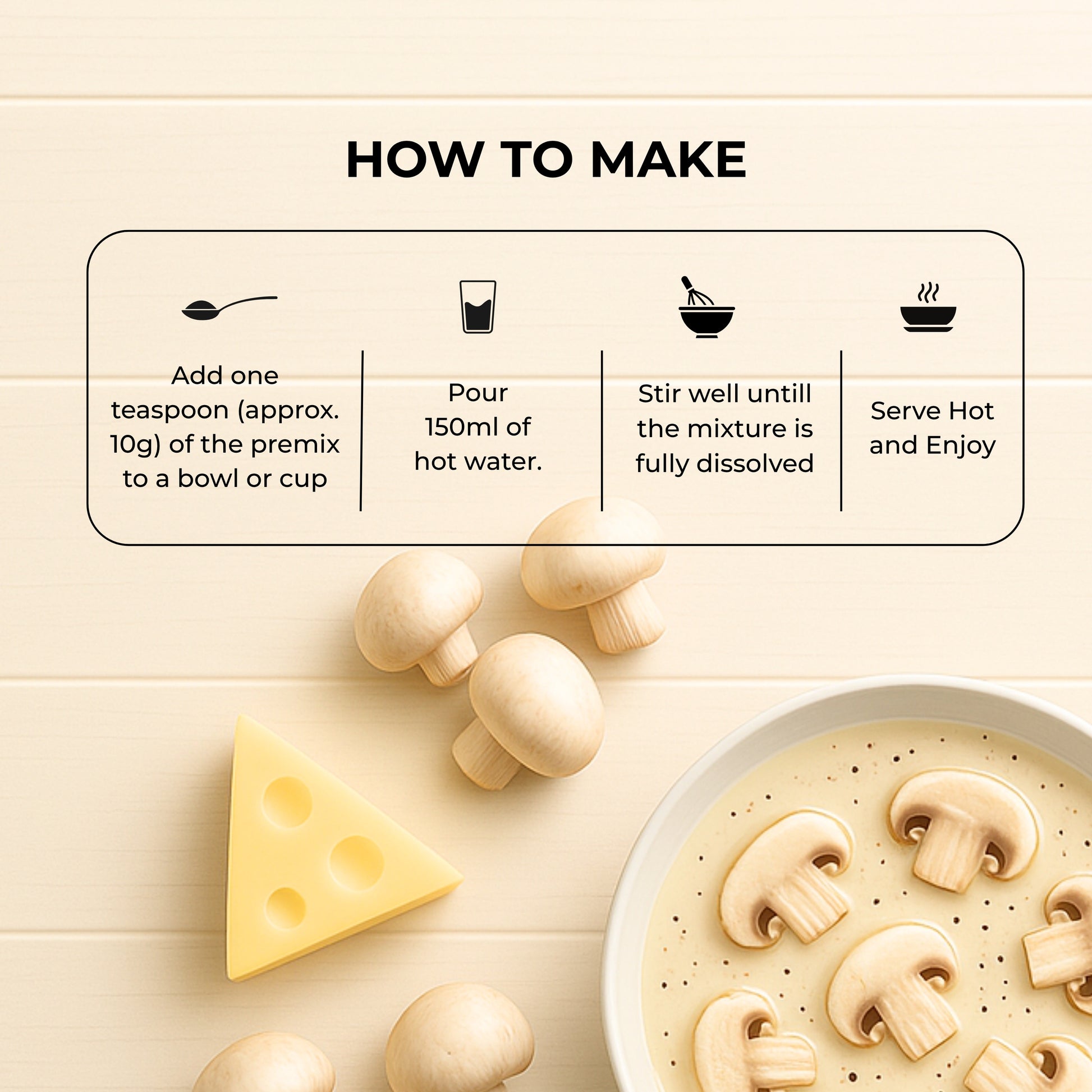 - Quick and Convenient: Enjoy a creamy and flavourful mushroom soup in minutes with this easy-to-use premix.