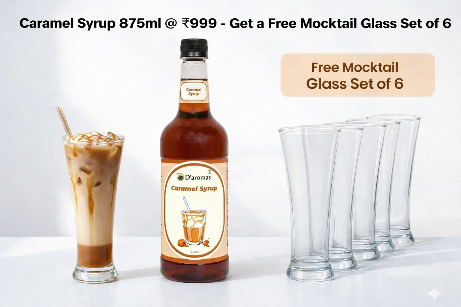 Caramel Syrup 875 ml – FREE Mocktail Glass Set of 6 (340 ml)