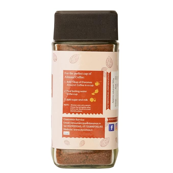 • Easy to prepare: Add 1 tsp of D'aromas Almond coffee in a cup. Pour boiling water in the cup. Add sugar and milk to taste and stir. Always use a dry spoon. Close tightly after use.
