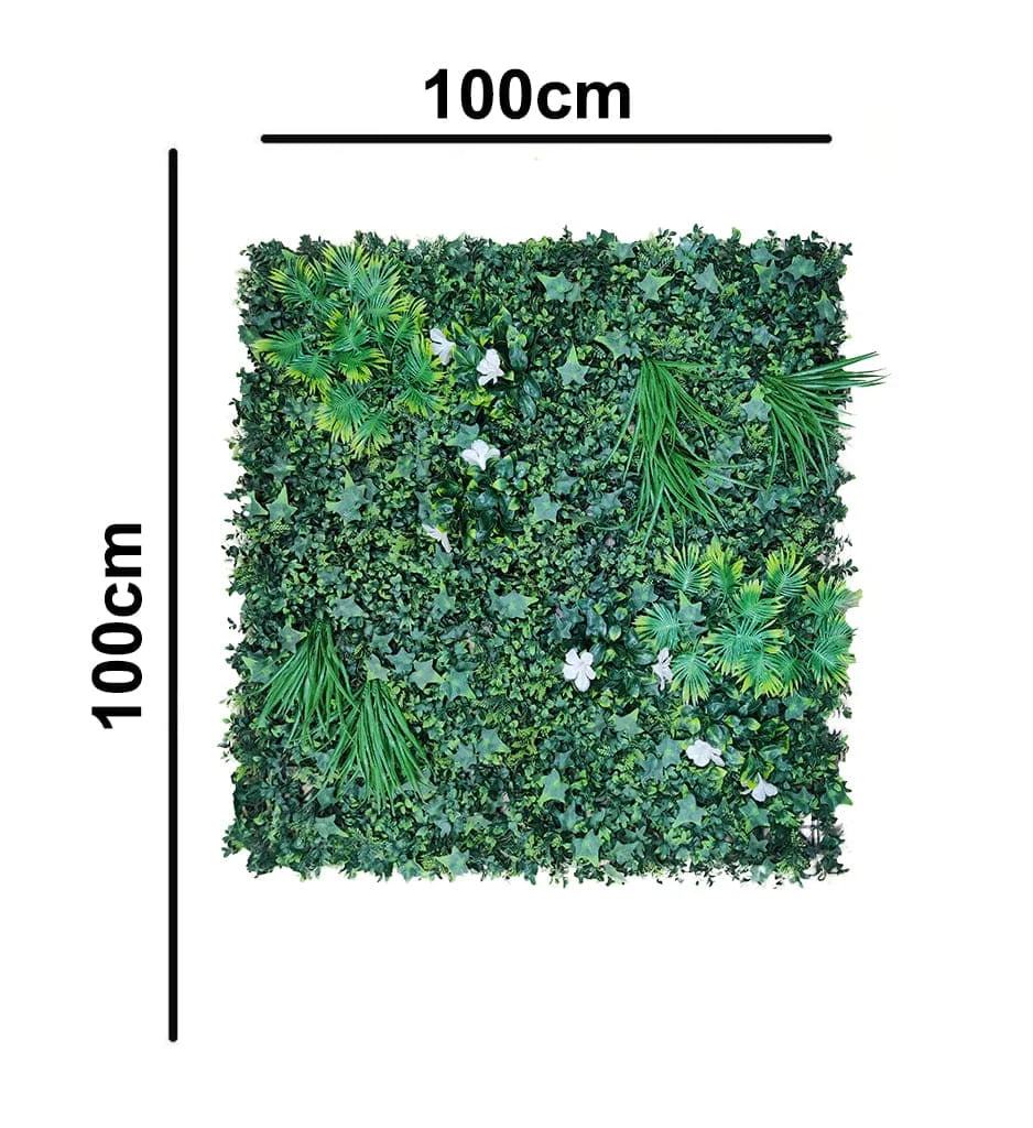 D'aromas Artificial Green Wall With White Flower Grass .Vertical Wall Garden For Outdoor.Size: 100cm X 100cm