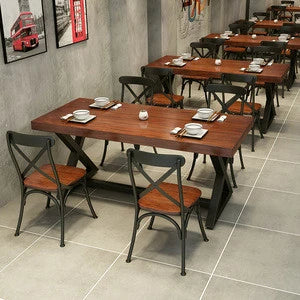 D'aromas Chinese-style restaurant dining table sets Metal frame & wooden antique furniture sets