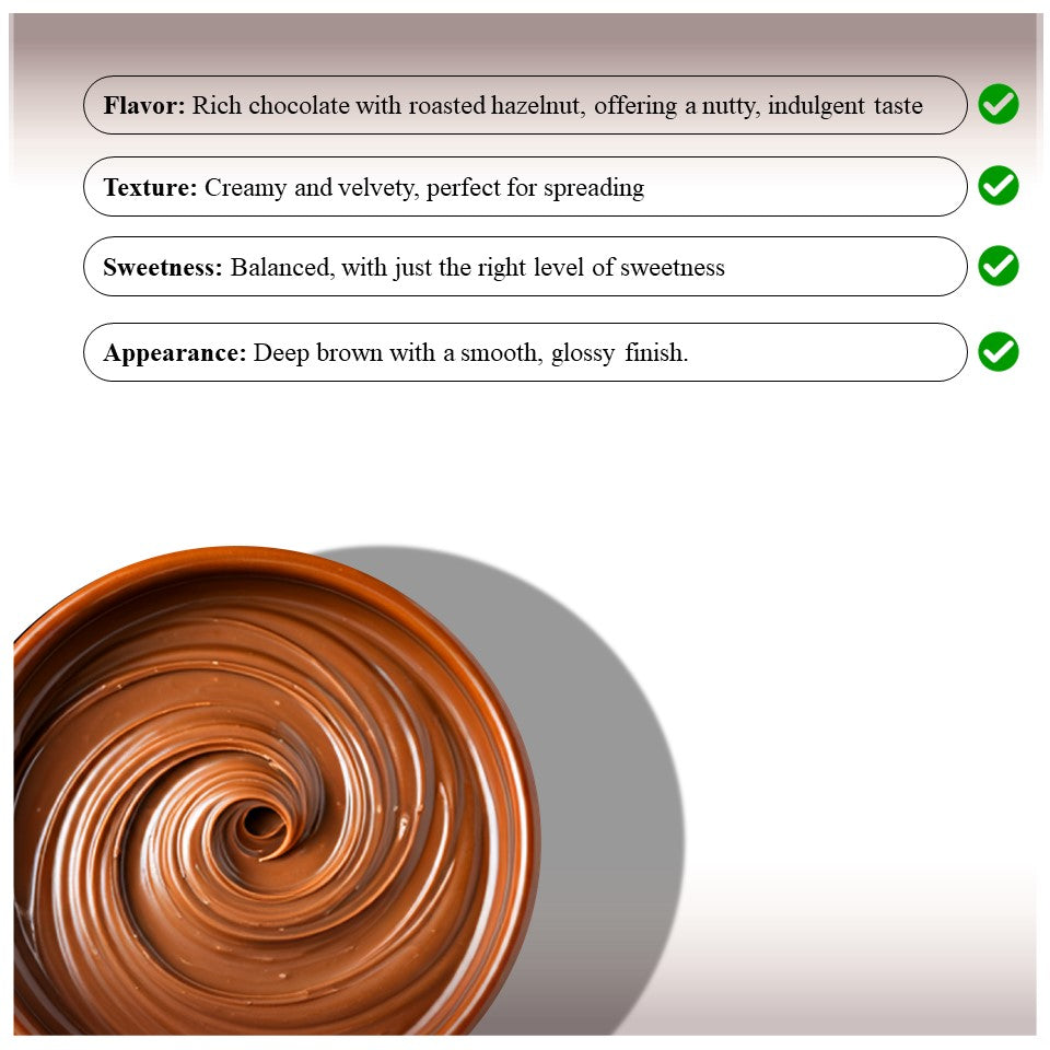 - Nutty & Rich: A luxurious spread made with premium hazelnuts, offering a creamy, nutty flavor with a touch of sweetness.